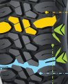◆ The deep shoulder pattern design and wide pattern block provide extreme grip force, which ensured the excellent handling and safety performance for the vehicle on the severe condition such as mountain and muddy road etc.